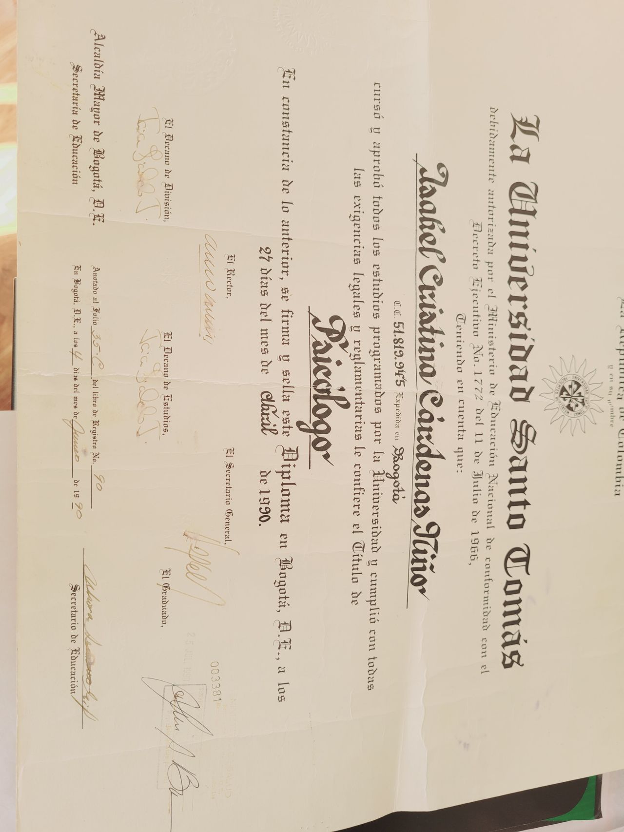 - Universidad Santo Tomás de Aquino. Psicóloga con énfasis en Psicología Clínica. Bogotá, 1990